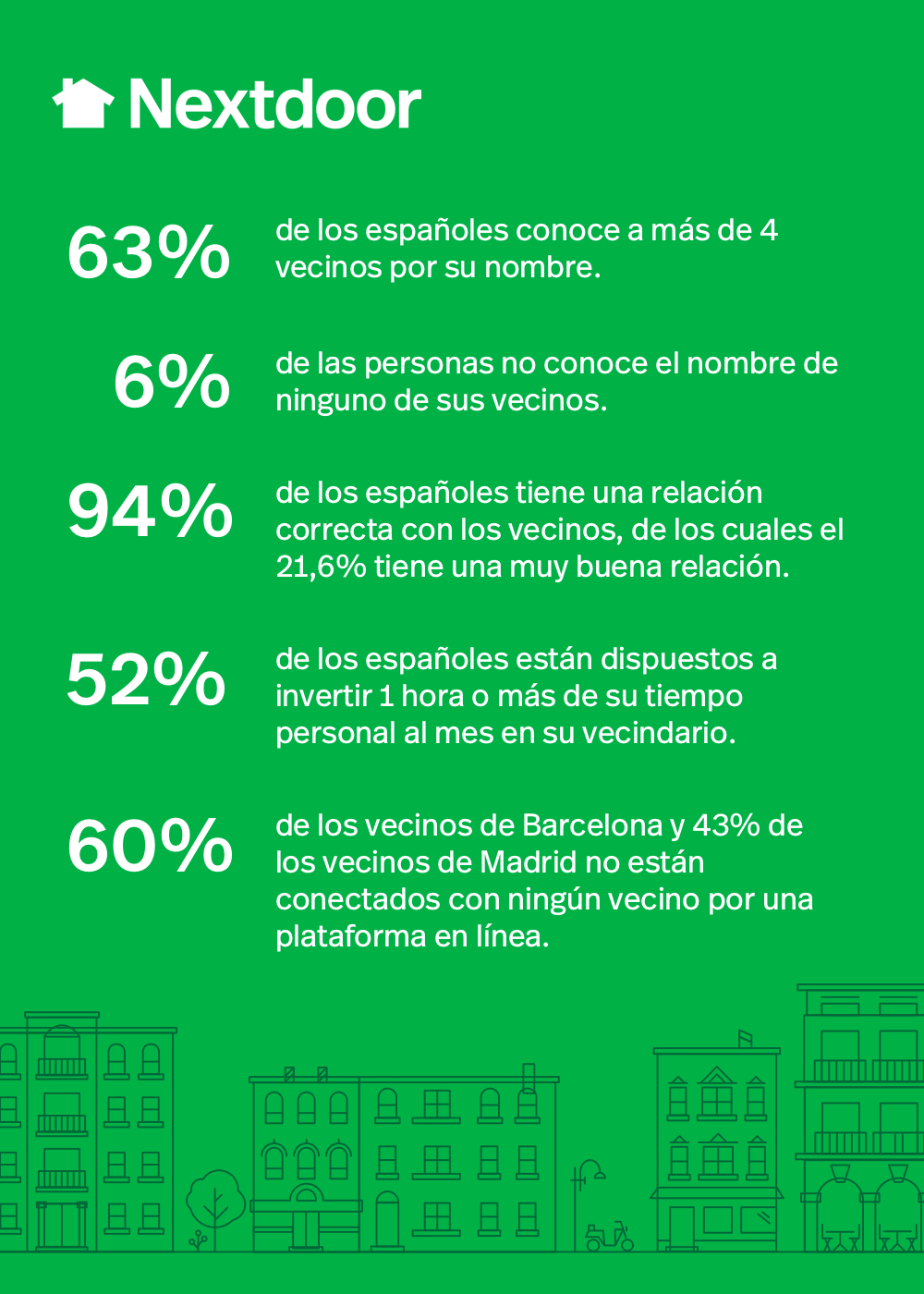 Para compartir trayecto en coche, pedir prestado un taladro, buscar una mascota perdida o encontrar profesora de inglés, son solo los primeros ejemplos que nos vienen a todos a la mente. Pero, los vecinos españoles, además, ya utilizan Nextdoor para mucho más. Para montar las primeras cenas con vecinos, para cohesionar a gente de todas las culturas y edades, para hacer compañía a ancianos o, simplemente, estar ahí cuando un vecino lo necesita.