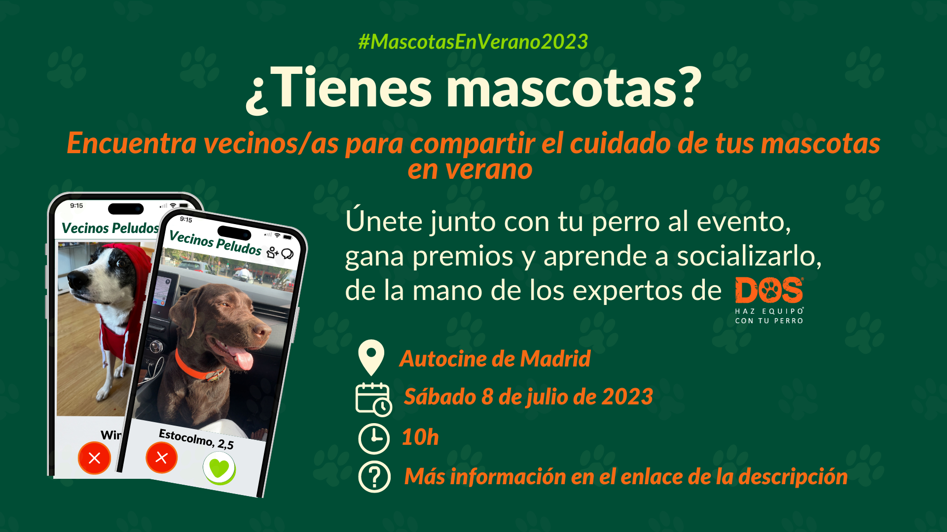 Si estás en Madrid, acompáñanos al primer evento de Nextdoor, para poner en contacto vecinos/as con mascotas que se puedan echar un cable estas vacaciones.